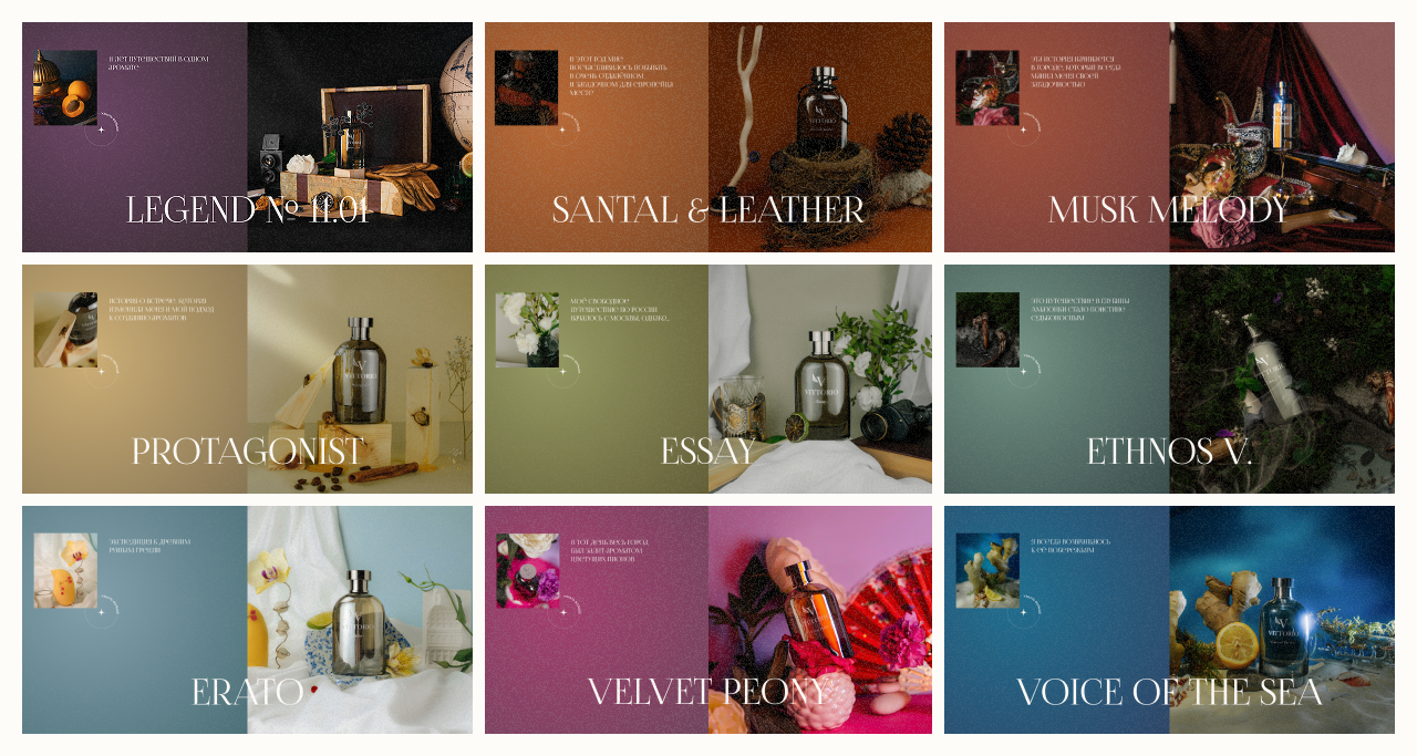 Продавать духи онлайн — дело небанальное. В магазине клиент хотя бы может открыть флакон, послушать ноту и решить. В интернете приходится работать образами, ассоциациями и атмосферой. Тут мало просто «красивых картинок» — важно построить ощущение, которое максимально близко передаёт аромат через экран. Мы взялись за задачу — упаковать эстетику запаха в цифровую оболочку.