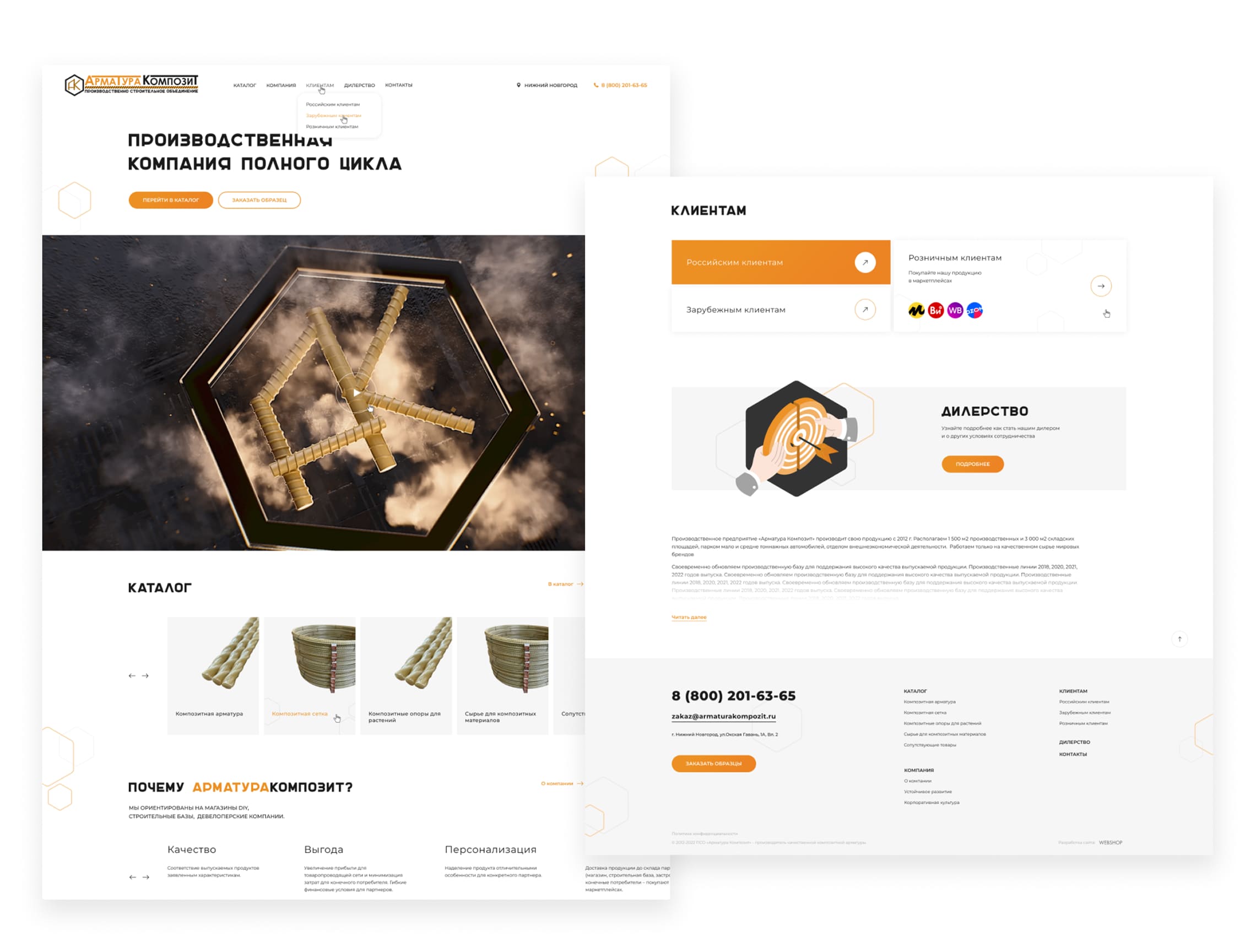 Главная страница первично знакомит пользователя с деятельностью компании и позволяет комфортно перемещаться к другим страницами для более подробного изучения.
