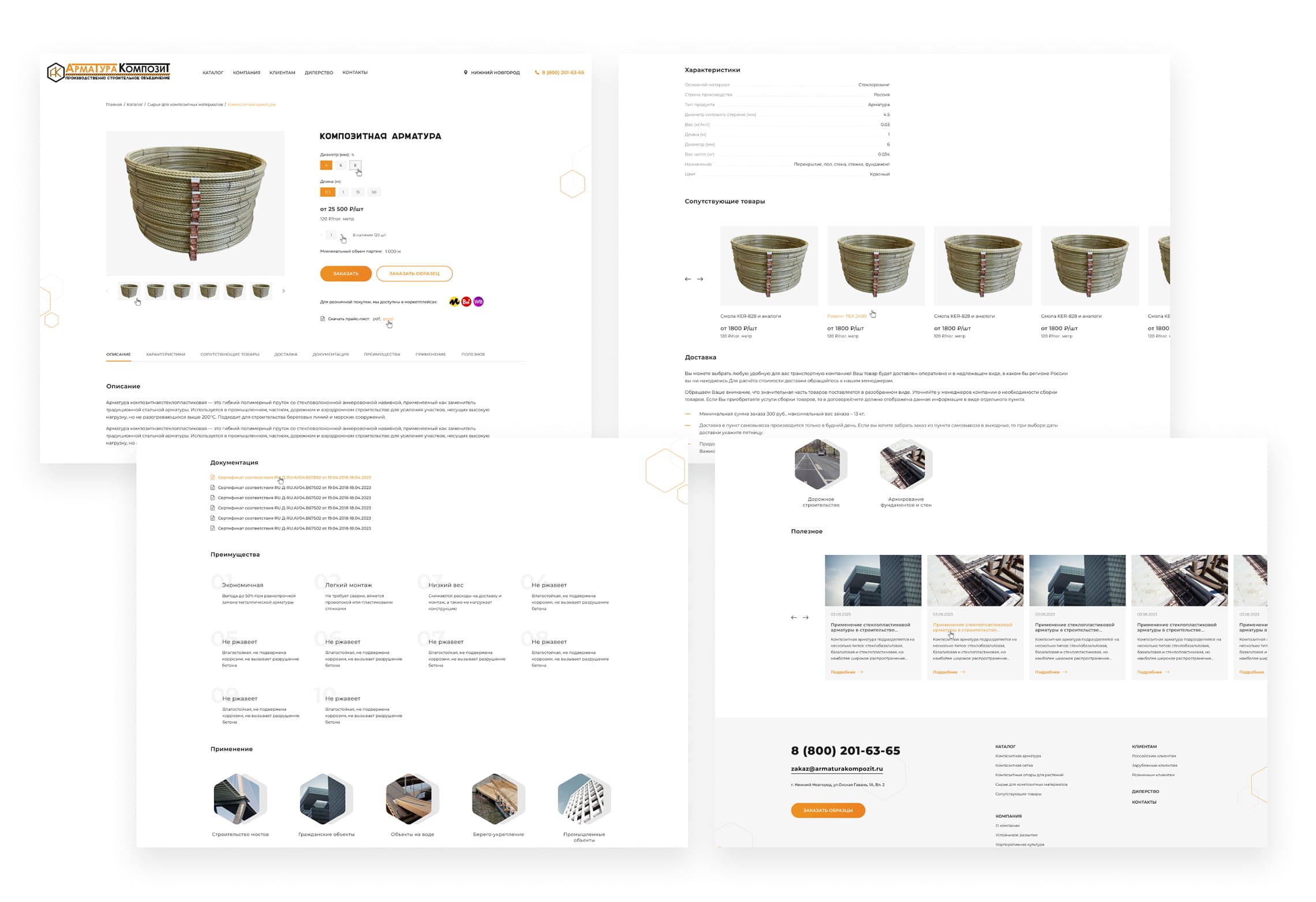 Разработали достаточно объемную карточку товара с возможностью изменения различных параметров товара, а также подробного ознакомления с характеристиками, преимуществами, сферами применения и документацией.