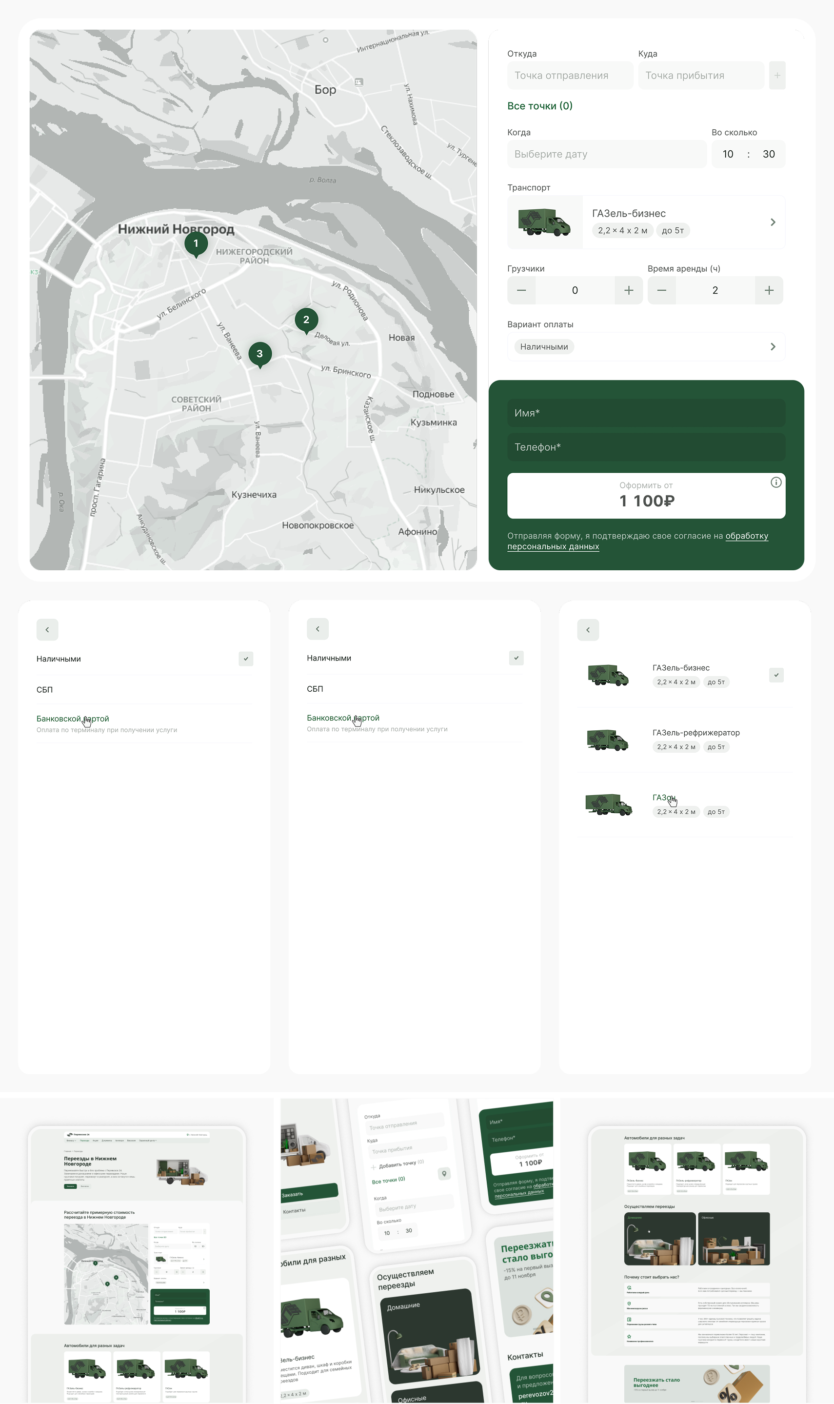 Фишкой страницы «Переезды» стал калькулятор для расчёта стоимости услуги. Она зависит от расстояния, типа транспорта и других факторов, которые вводит пользователь