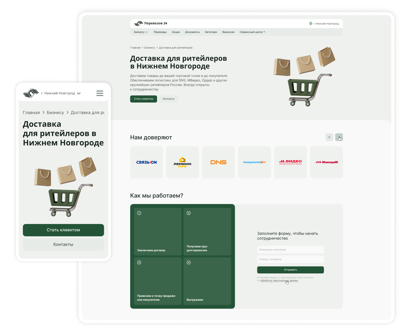 На странице «Доставка для ритейлеров» показали известных клиентов компании для повышения уровня доверия и сделали акцент на форму обратной связи