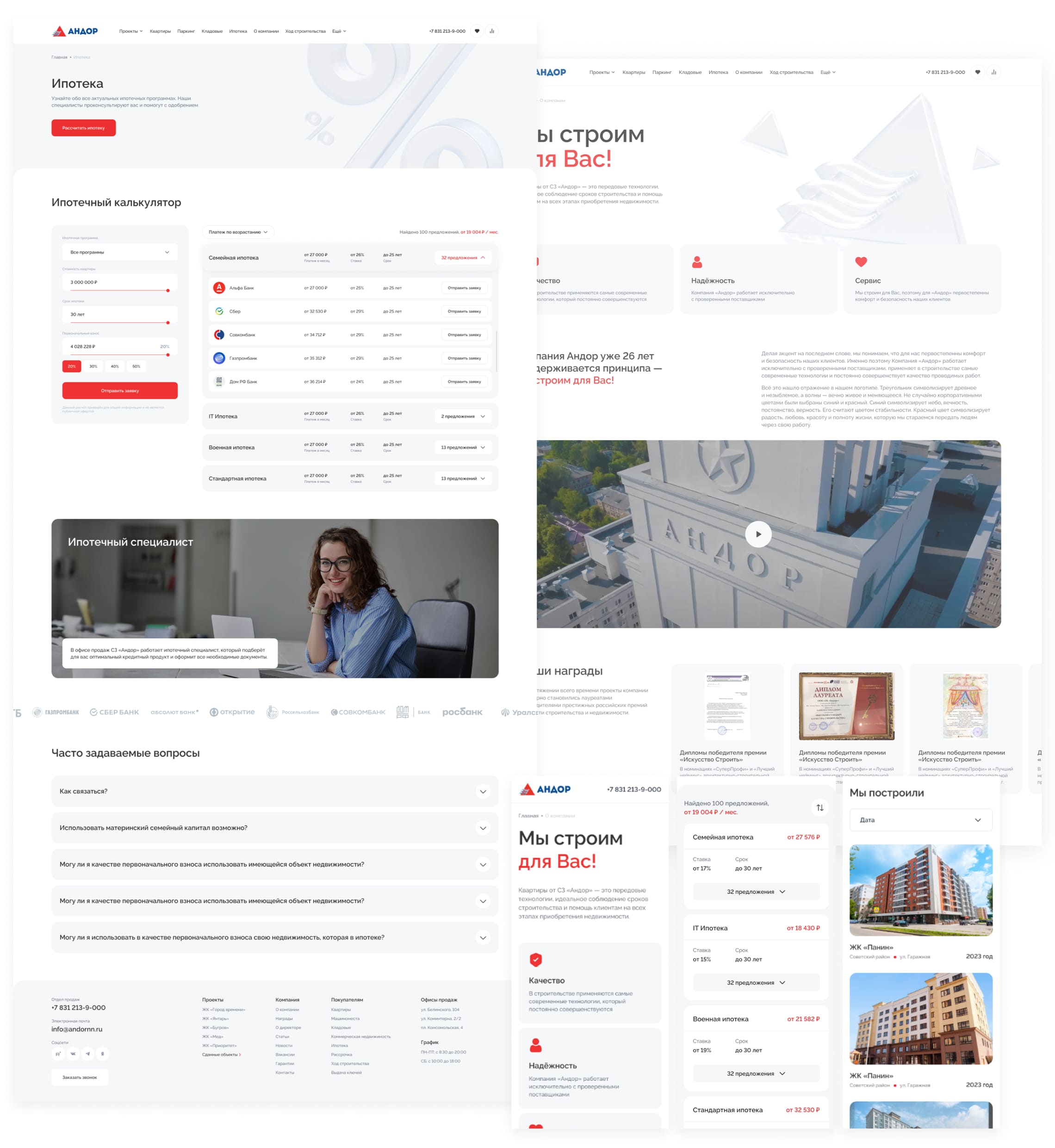- Разработка сквозной системы фильтрации, ипотечного калькулятора, ЛК и других функциональных элементов;