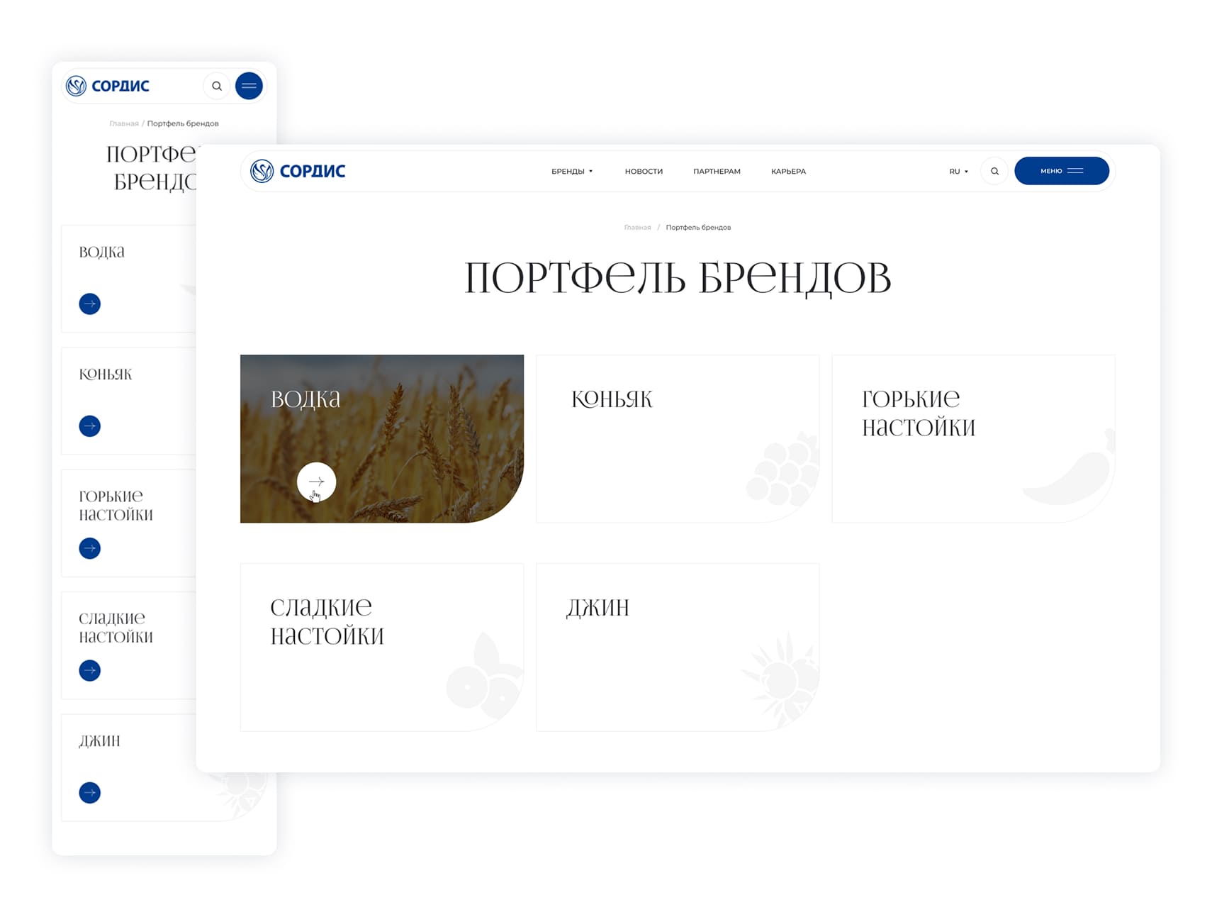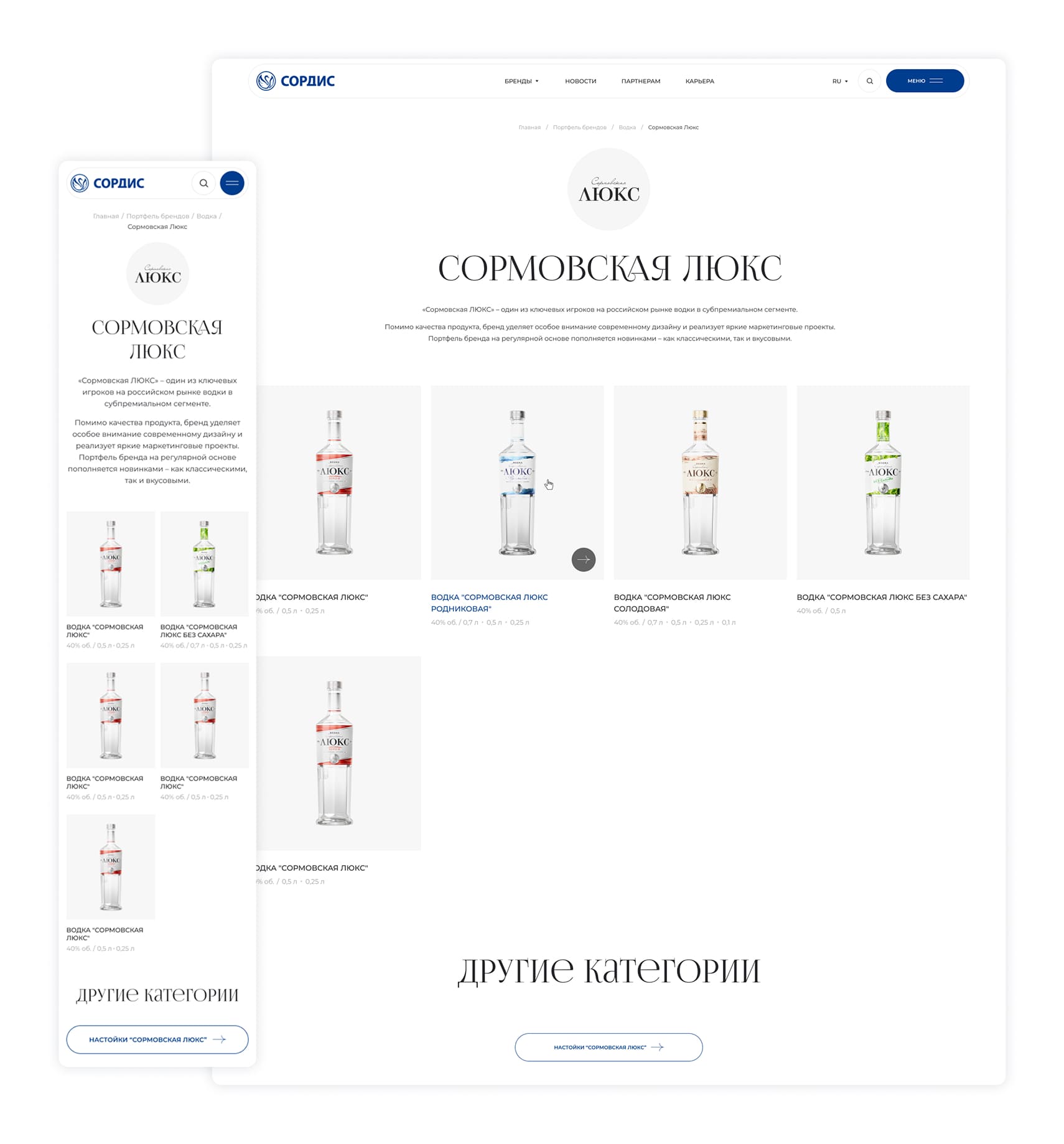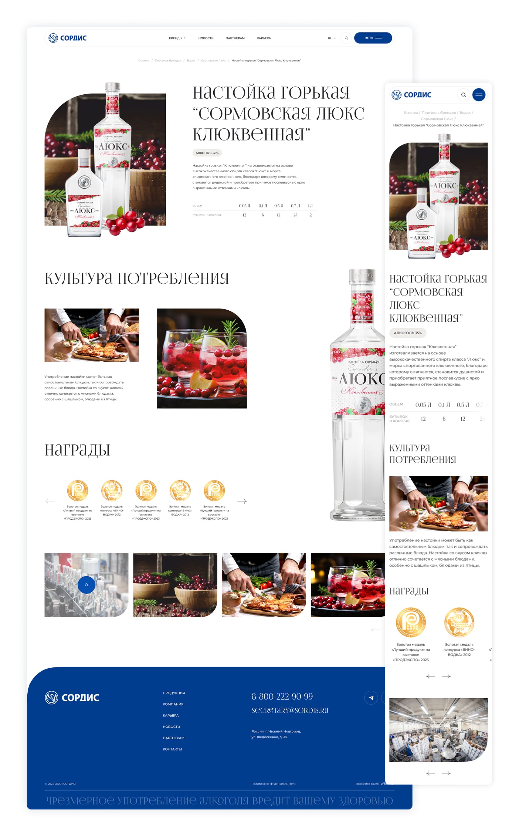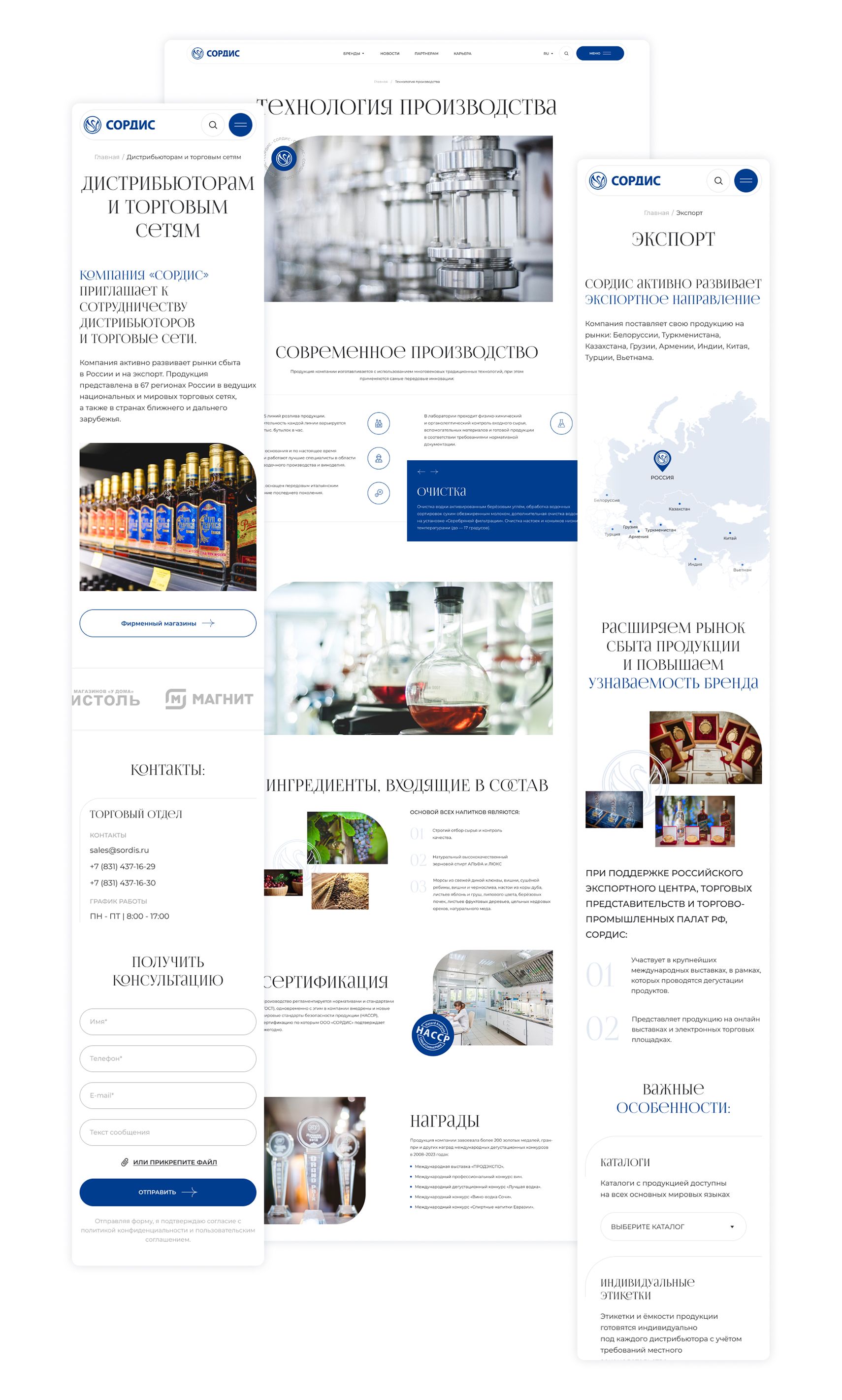Сордис — один из крупнейших в России производителей алкогольной продукции. Чтобы эффектно презентовать продукцию и рассказать о компании, было решено разработать современный и удобный корпоративный сайт, который станет точкой привлечения партнёров и расскажет о ценностях.