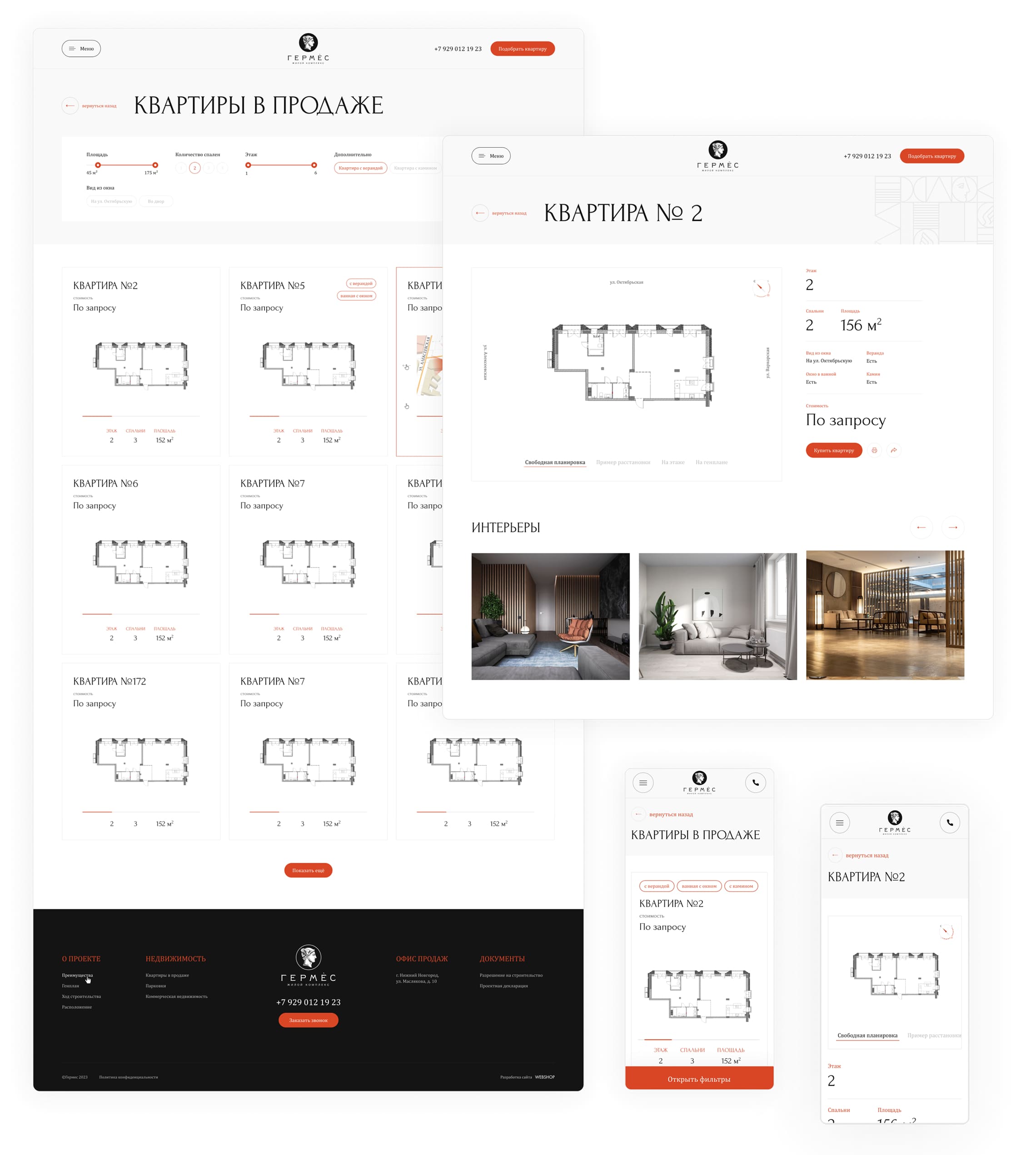 На странице подбора квартир использовали крупные и «воздушные» карточки, чтобы подчеркнуть эксклюзивность и уникальность каждой квартиры.