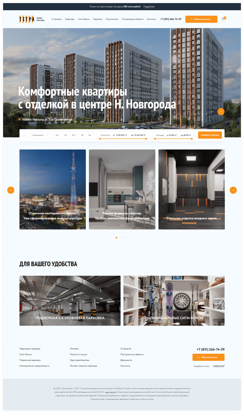 - Разработка удобной системы подбора квартир, парковок и кладовых