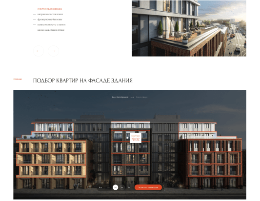 На странице подбора квартир использовали крупные и «воздушные» карточки, чтобы подчеркнуть эксклюзивность и уникальность каждой квартиры.