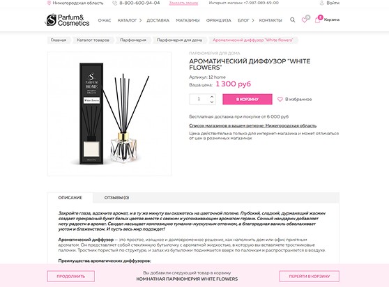 Основное направление продукции компании — парфюмерия. Поэтому в каталоге отдельно вынесли карточки с категориями парфюмов. Карточки дополнили тематическими изображениями, которые помогают в навигации