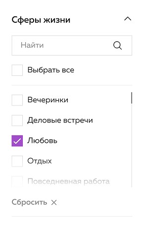 Кроме стандартного поиска по названию, есть поиск по аналогам известных композиций — в результатах показаны товары с похожей пирамидой аромата